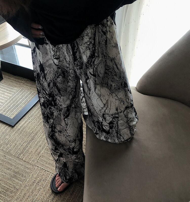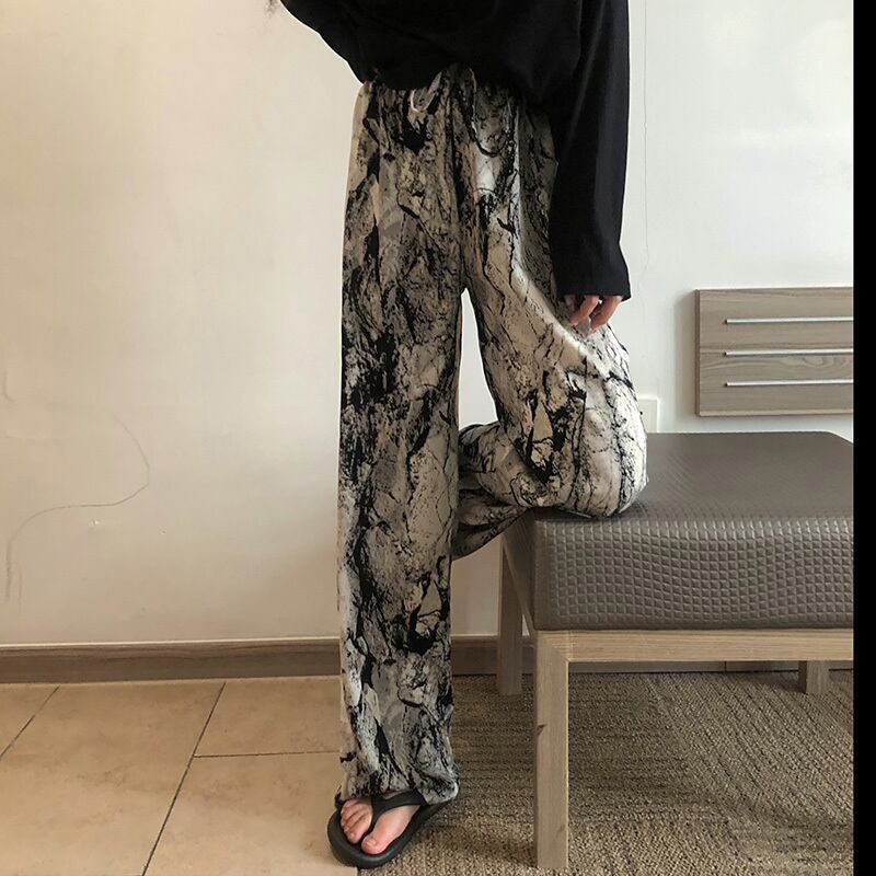 ウエストストレートルーズワイド脚絞り染めズボンストリート Pantalones 春パンツ Y2k スプリング 春物 ワイドレッグ ワイドパンツ