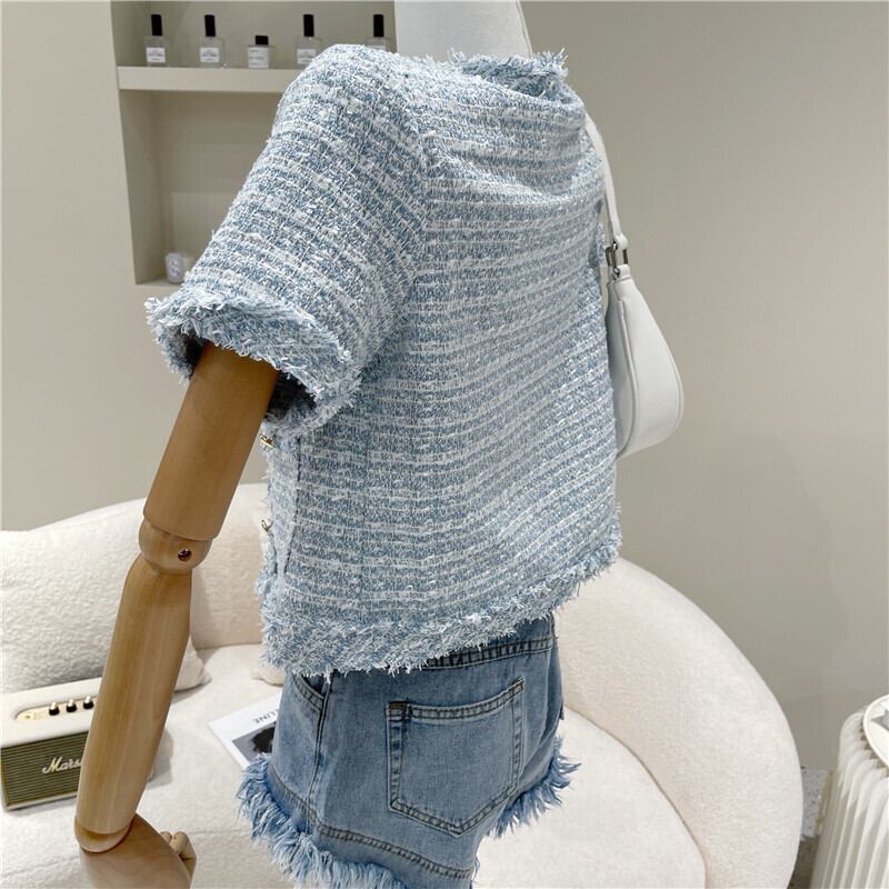 コート&ジャケット サマーレディ オフィス ピンク Oネック 半袖 ツイードジャケット 気質 スイートシック ショート ハーフスリーブ 大人ガーリー スウィート キュート カジュアル 夏物 会社 学校 通勤や通学にも
