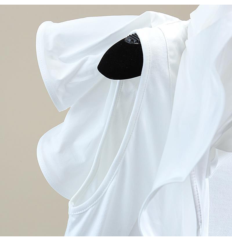 ブラック ホワイト ルーズ イレギュラー フリル コットン ショートスリーブ Tシャツ Oネック トップス ワイルドティー 春 Tシャツ 半袖 ハーフスリーブ スプリング 春物