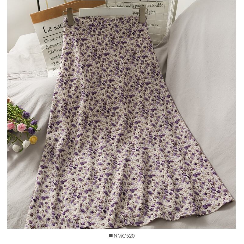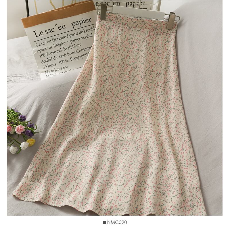 ミディウエストレトロ花柄スカートスリム A ライン段 Faldas Largas 春シフォンスカートレディワイルド OL スプリング 春物 Aライン