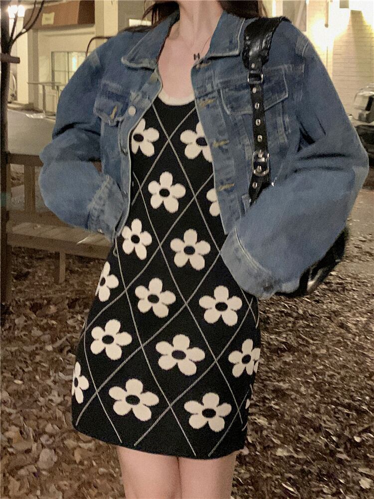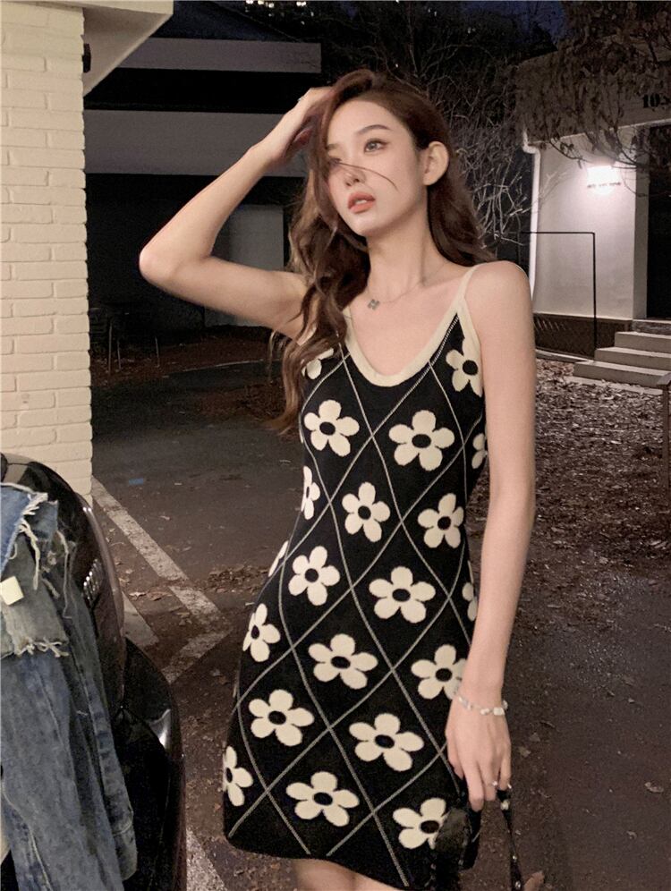 セクシーなニットサスペンダードレス春のレトロなパーティーミニ自由奔放に生きるドレス Vestidos デフラワードレス夏 スプリング 春物 サマー 夏物 フラワーデザイン