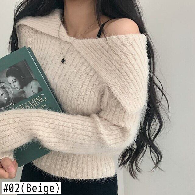甘いセクシーなミンクカシミヤオフショルダーピンクのセーターののセーターフリースクロップトップススリムモヘア 大人ガーリー スウィート キュート カジュアル