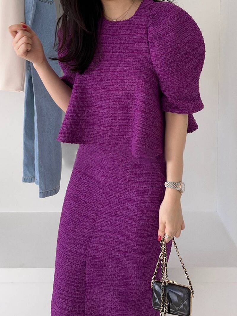 レディース トップス シック スウィート パフ 半袖 ドール シャツ カジュアル ソリッド ブラウス サマー ツイード ブラウス ショート ハーフスリーブ 大人ガーリー キュート 夏物 ソリッドカラー