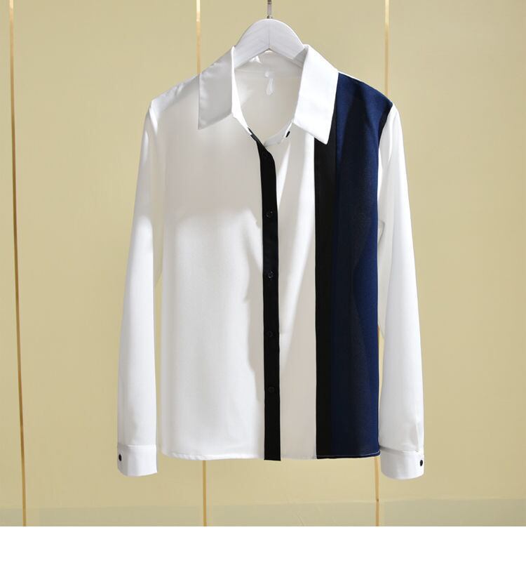 パッチワーク長袖シフォンシャツオフィスレディレトロストライプシャツ春トップスルーズブラウス ロング スプリング 春物 会社 学校 通勤や通学にも