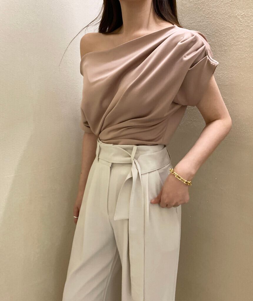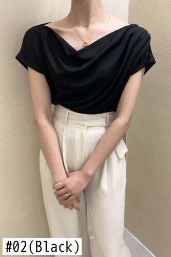 優しいOLシャツオフショルダー半袖プリーツシャツ気質トップデブラックシフォンブラウススリム ショート ハーフスリーブ