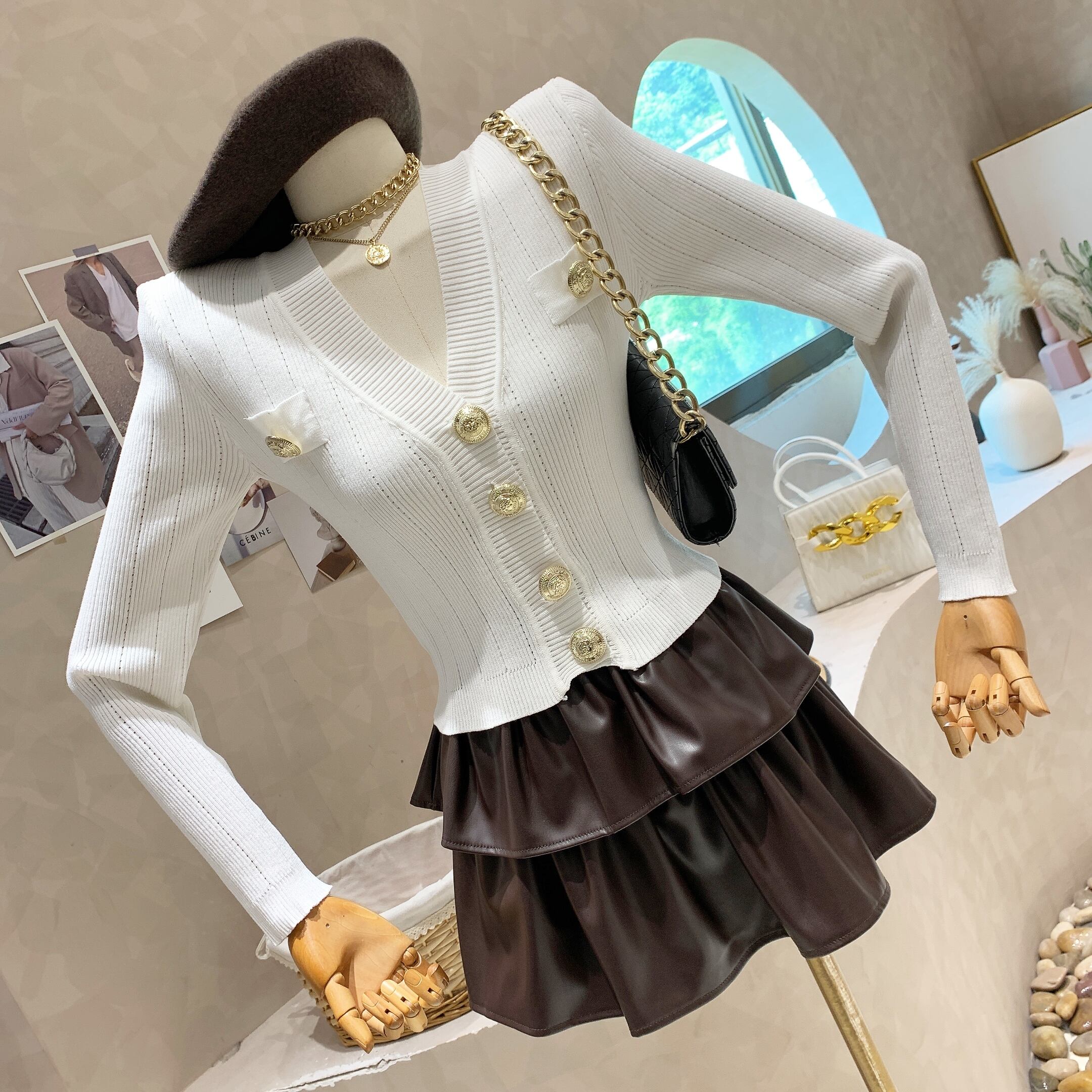 セーター優しいスリム服クロップドピンクカーディガン V ネック金属ボタンニットカーディガンジャケット太陽シャツ Vネック