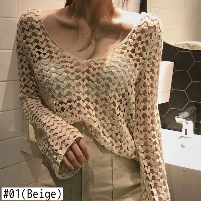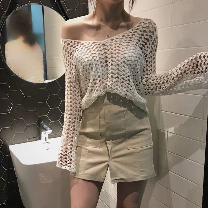 春オフショルダーセクシーなニットセーターレトロ V ネックトップルースカットアウト日焼け止めシャツ薄いブラウス特大セーター スプリング 春物 Vネック