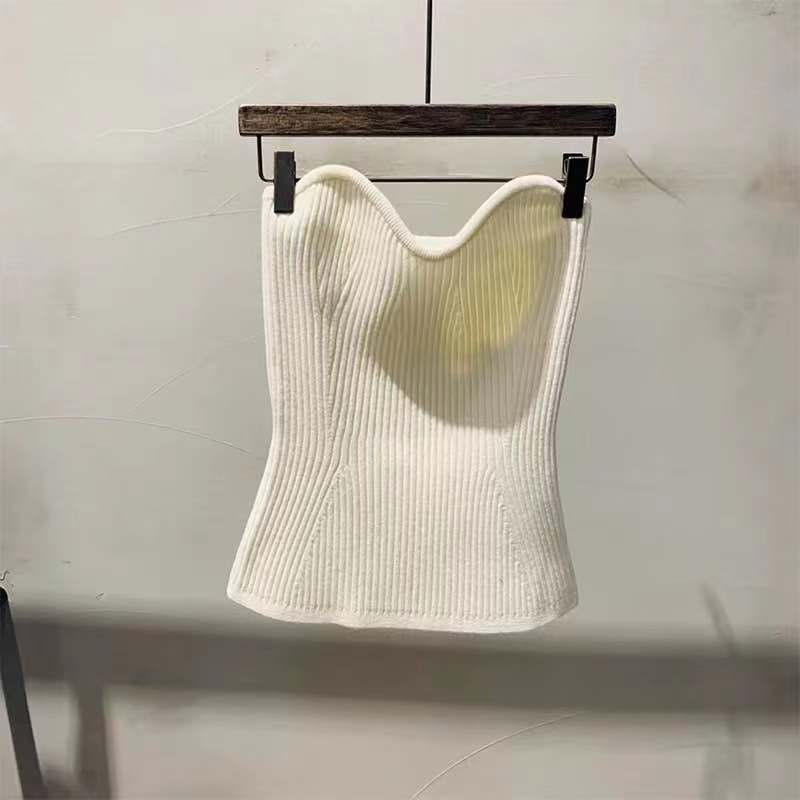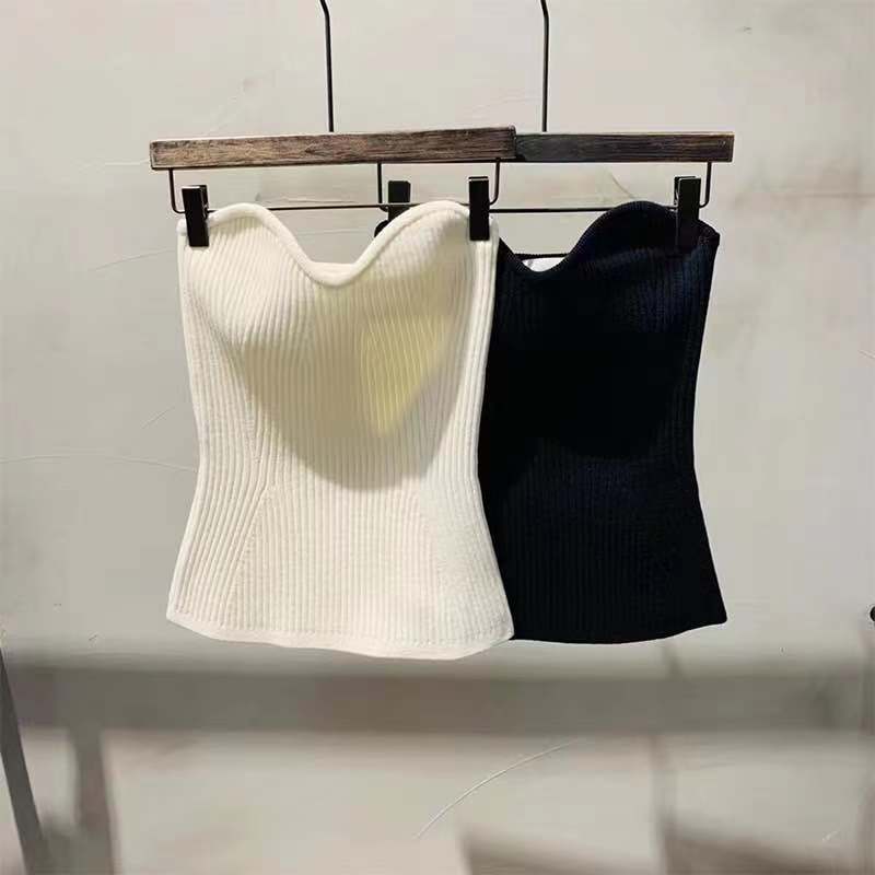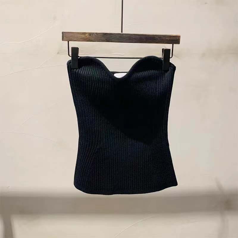 ブラックコルセットタンクトップセクシーなキャミソールニットスラッシュネックオフショルダーストラップレス Tシャツスリム Tシャツクロップブラウスシャツ春 スプリング 春物