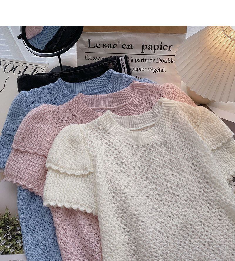 シャツスリムワイルドソリッド Tシャツ O ネックパフスリーブ Tシャツ Y2k トップホワイト半袖ニット Tシャツセーター ショート ハーフスリーブ Oネック ソリッドカラー