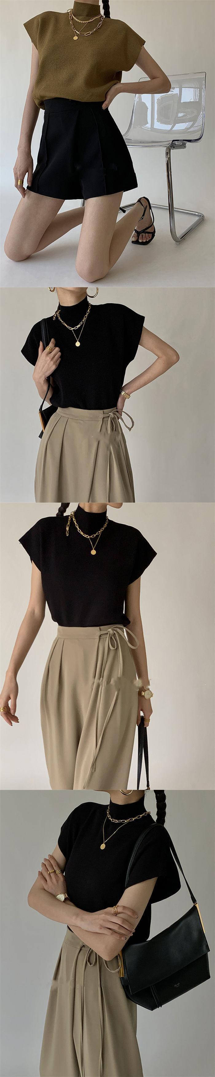 ハーフカラーニットベストルーズ半袖 Tシャツクロップトップ Tシャツ Tシャツ服 ショート ハーフスリーブ