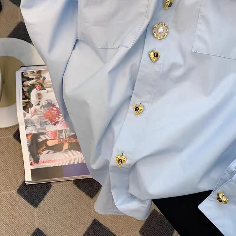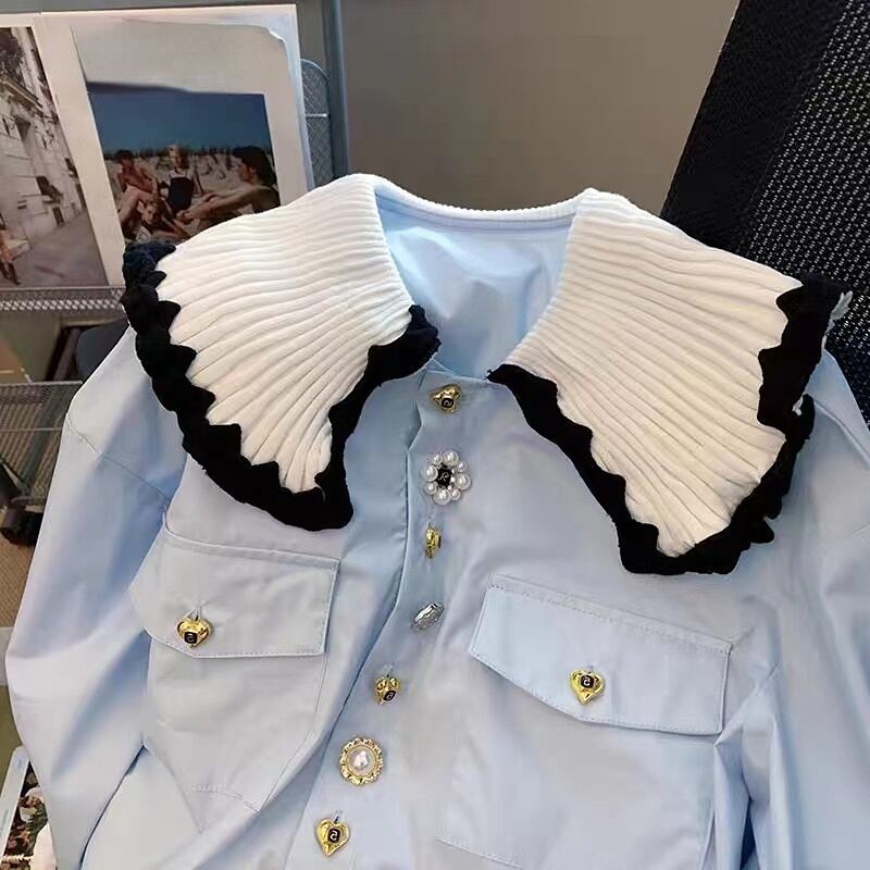 ブルードールシャツシックな春レトロボタントップスパッチワークブラウス襟シャツレディ スプリング 春物