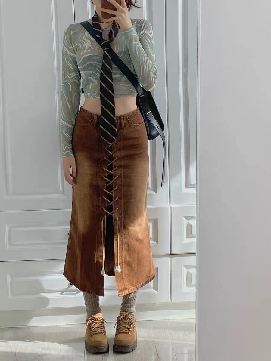 スリム A ライン包帯ウエストロングデニムマーメイドスカート原宿段 Faldas Largas ミディマキシジャンスカート かわいい Aライン