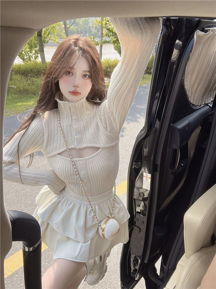 セクシーな中空ピンクのタートルネックのセーターのジャージージャンパー特大セーター甘いシックなボタンプルオーバートップスセーターシャツ 大人ガーリー スウィート キュート カジュアル