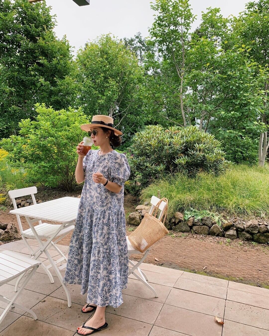レトロ気質 O ネックパフ半袖プリントインクドレスミニ夏 Vestidos スリムフリルシックルース ショート ハーフスリーブ サマー 夏物 Oネック