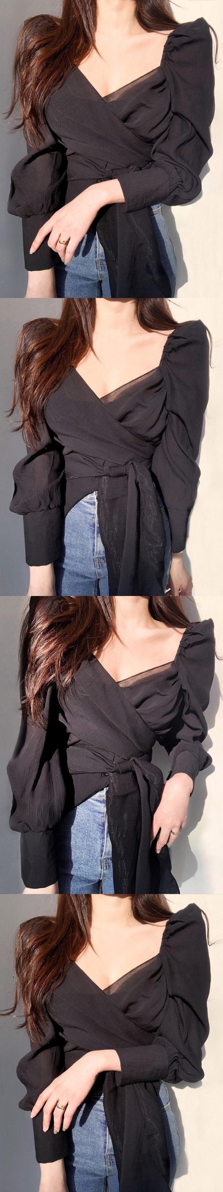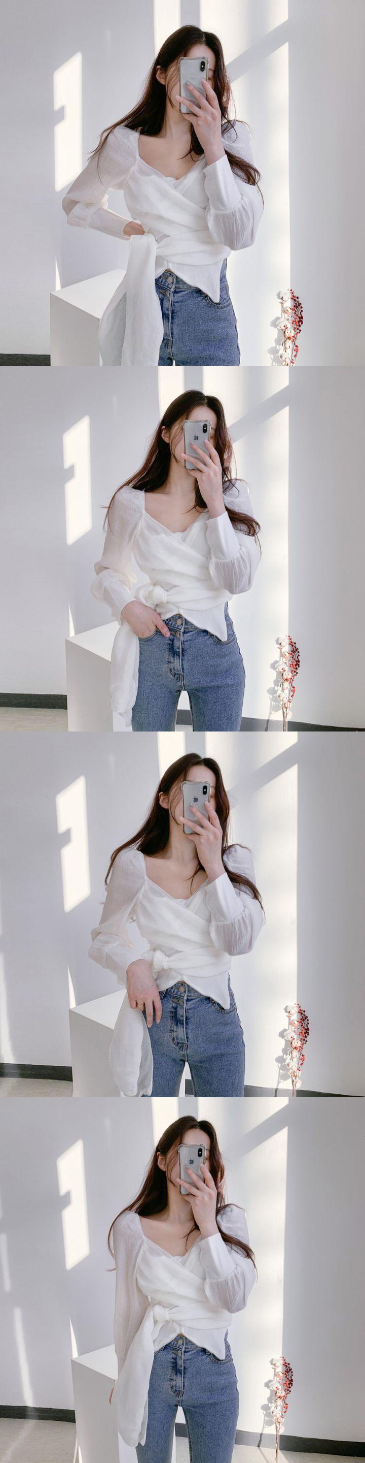デモーダスリム倍 V ネック包帯ウエストクロップトップス白シフォンシャツレディブラウスシャツ春 ホワイト スプリング 春物 Vネック
