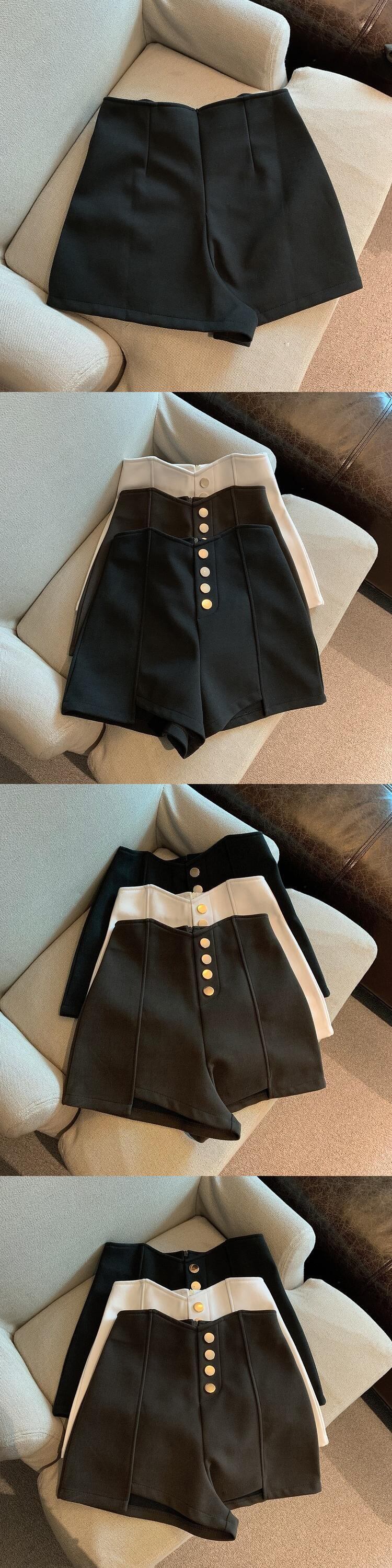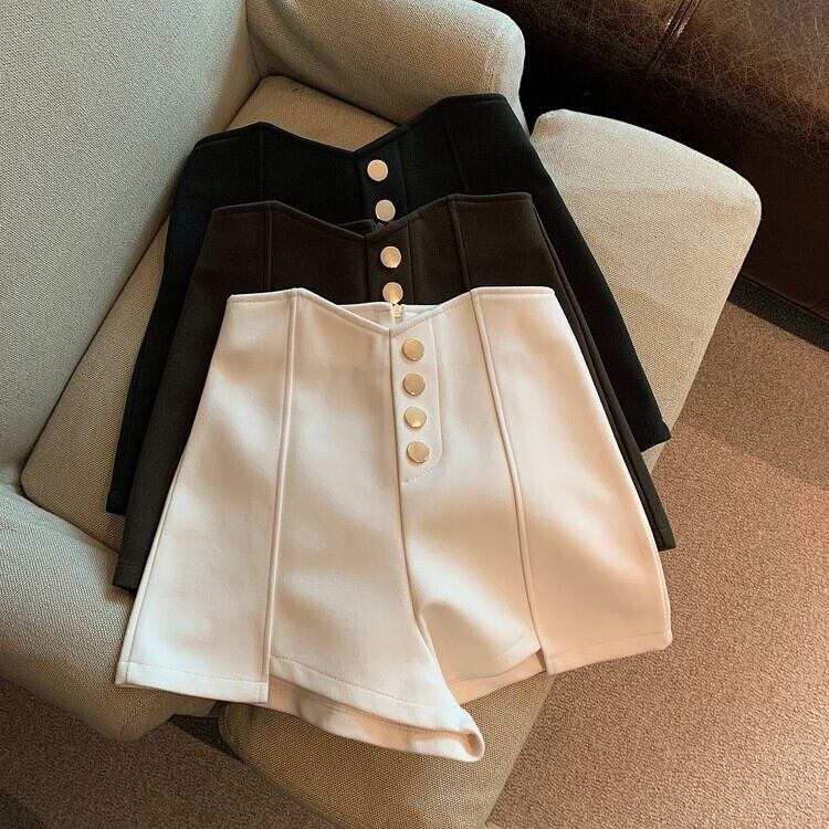 黒ウエストショートパンツ秋ホットワイド脚貨物 Pantalones Cortos デ戦利品ショーツショートパンツ野生のセクシーな ブラック オータム 秋物 ブルマー ワイドレッグ ワイドパンツ