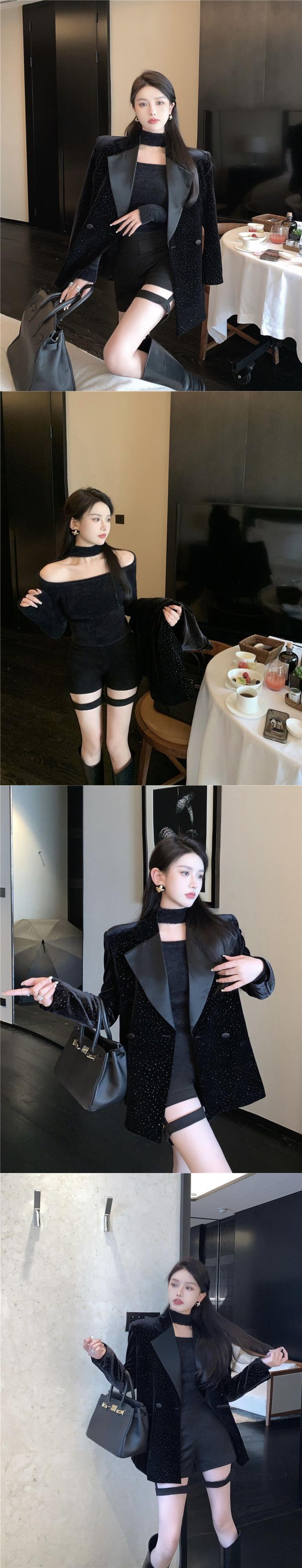 セクシーなミンクカシミヤトップスオフショルダーホルタークロップセータースラッシュフリースピンクのセーターののセーター甘い 大人ガーリー スウィート キュート カジュアル
