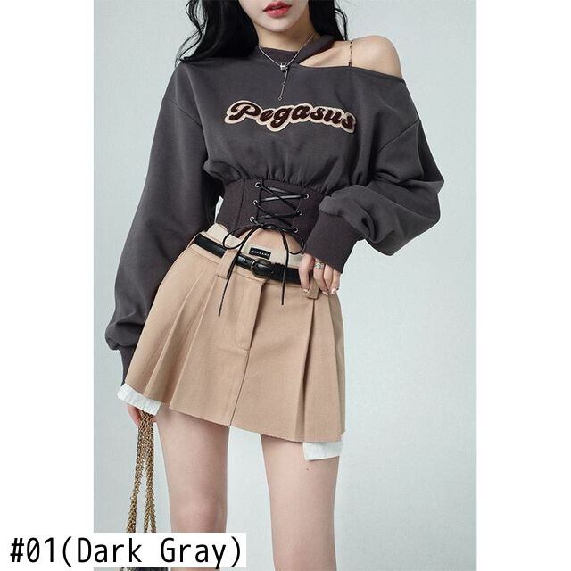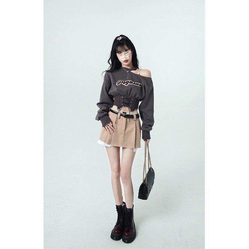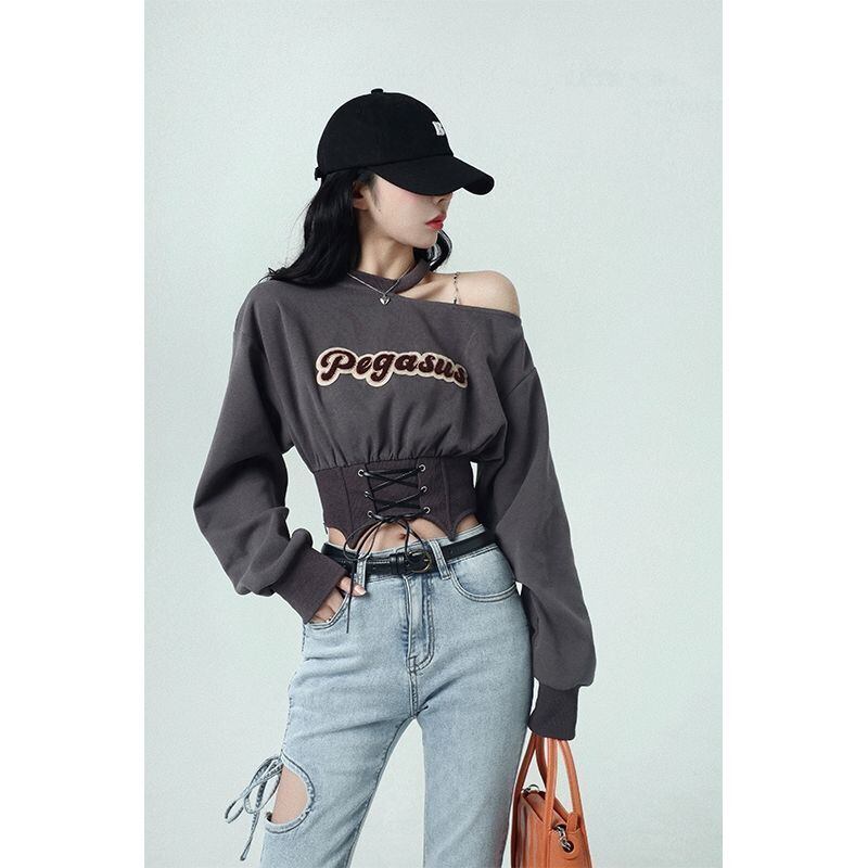 スウェットシャツ Y2k Kpop ワンショルダークロップドトップストリート原宿グランジプルオーバー美的パーカー かわいい