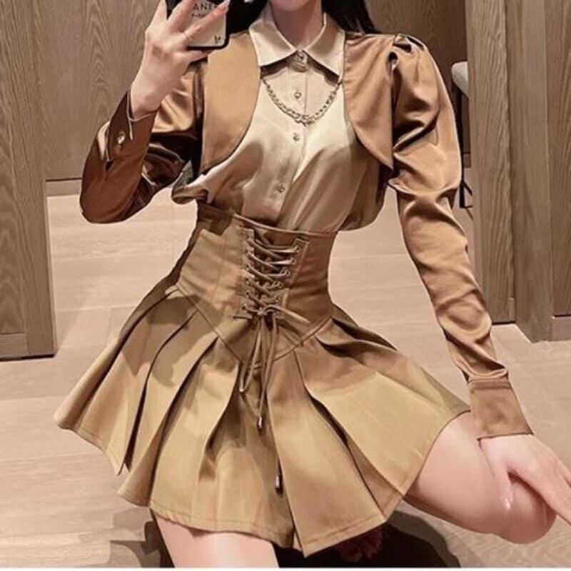 春 a ライン ワイルド ウエスト セクシー な スタイル ホワイト プリーツ スカート包帯ミニ Y2k 膝上ペチコート faldas 黒 ブラック スプリング 春物 Aライン