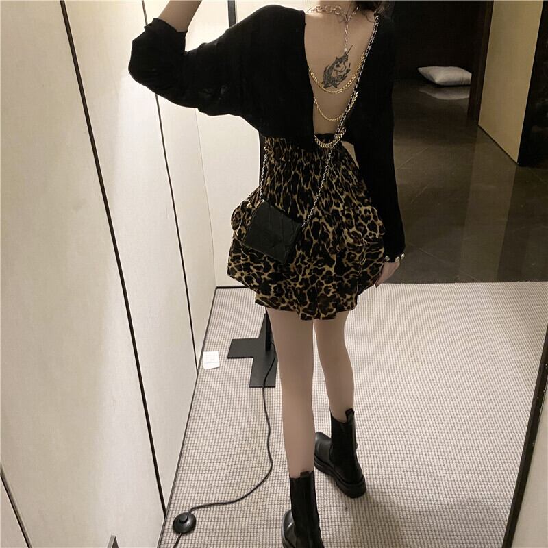 セクシーなスリムウエストショートフリルヒョウスカート春夏 Y2k プリントケーキミニスカート段 Faldas スプリング 春物 サマー 夏物