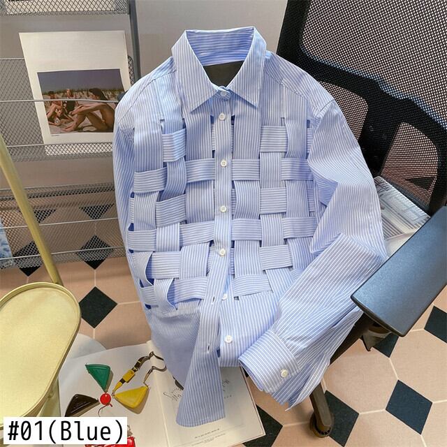 チェック柄ブラウス春ルーズブルーストライプシャツワイルドルーズトップス春シャツレディ スプリング 春物