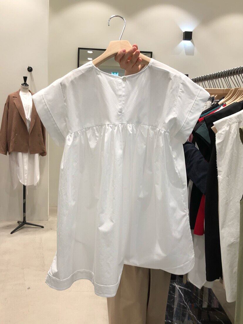 シャツ O ネック半袖夏ブラウスルーズシックなひだ気質ブラウストップスデモーダ ショート ハーフスリーブ サマー 夏物 Oネック