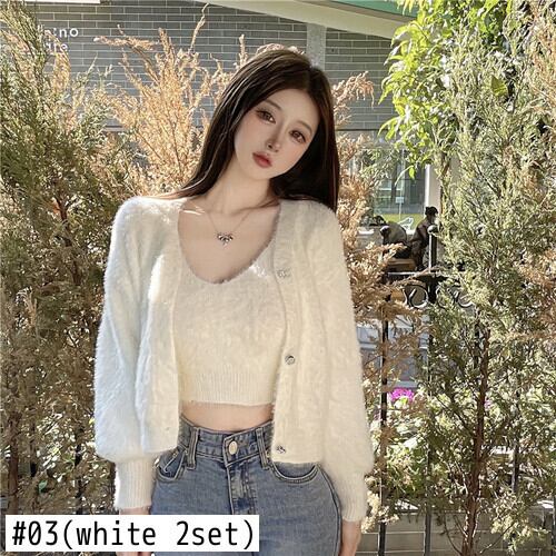 ソフトフリース キャミソール トップス クロップド ピンク カーディガン ニット ジャケット 2点セット シック 秋 甘い服 セーター 大人ガーリー スウィート キュート カジュアル