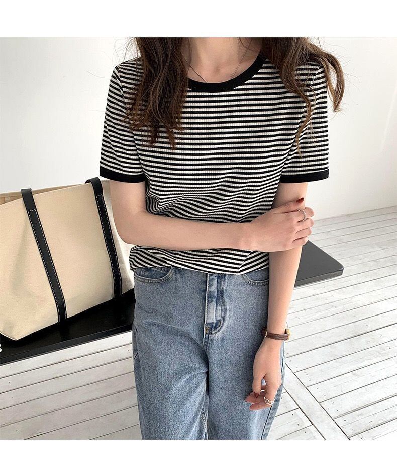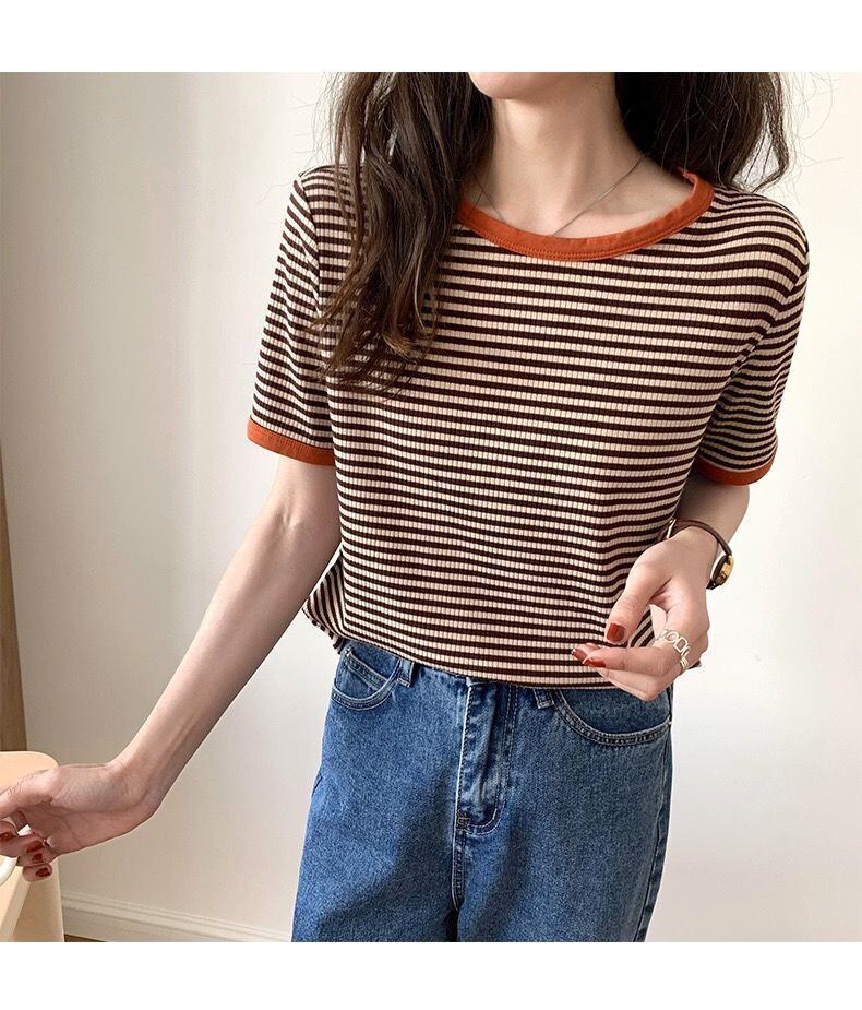 グランジ服クロップトップ O ストライプ半袖 Tシャツシャツグラフィック Tシャツ特大 Tシャツ綿 ショート コットン ハーフスリーブ