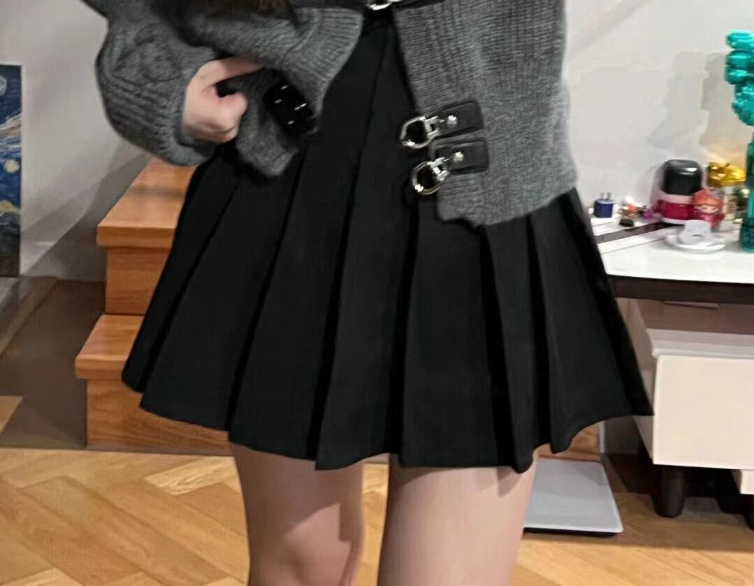 ミニ ブラック プリーツ スカート セット レトロ グレー ニット カーディガン コート プレッピー スタイル 春セーター Feminino Moda スプリング 春物