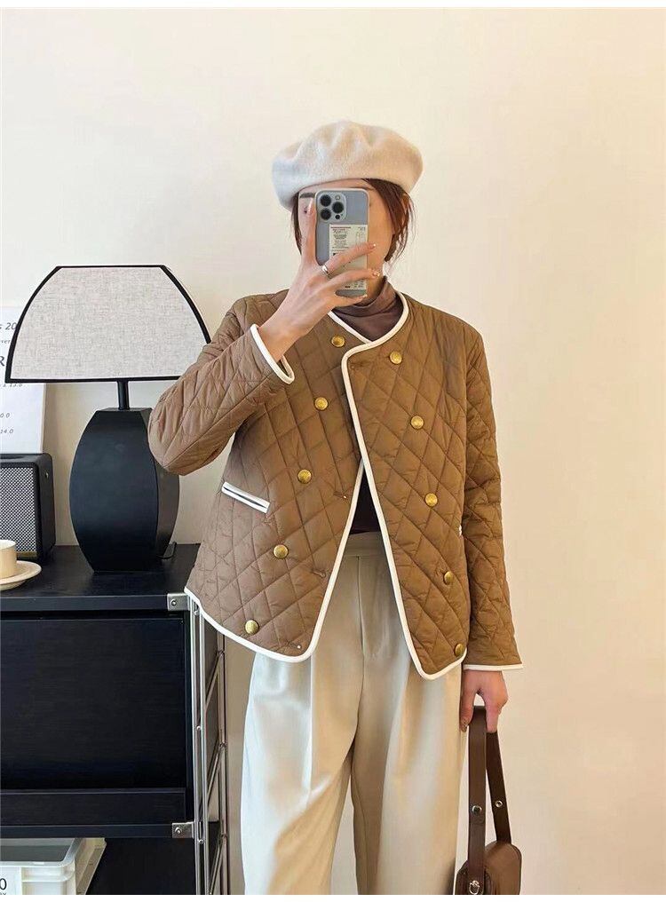 レディース パーカー ブラック 春 秋 アーガイル ダブル ブレスト パファー ジャケット チャケタス コート Roupas s スプリング 春物 オータム 秋物