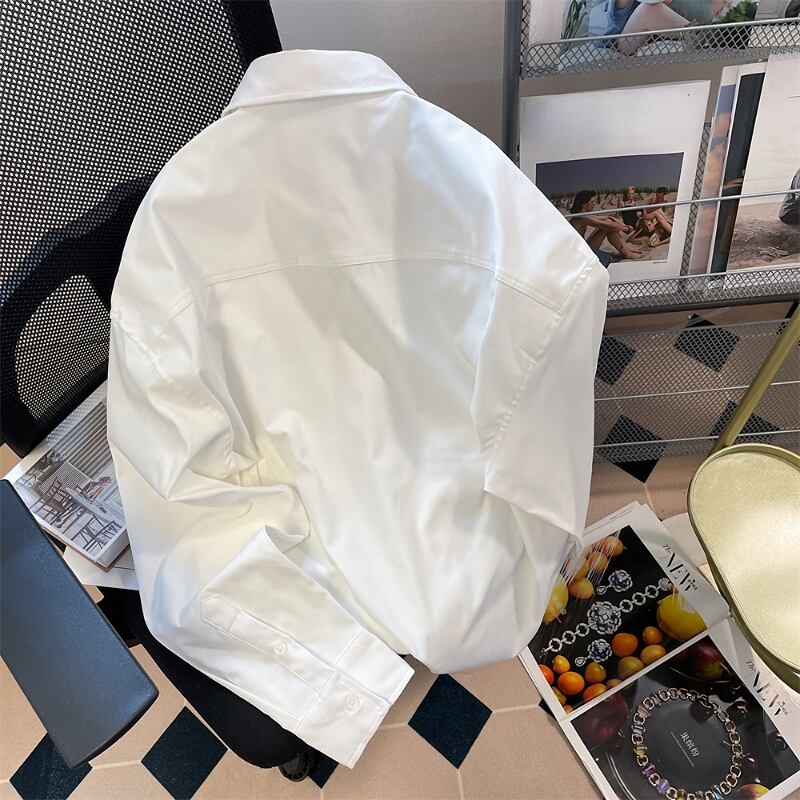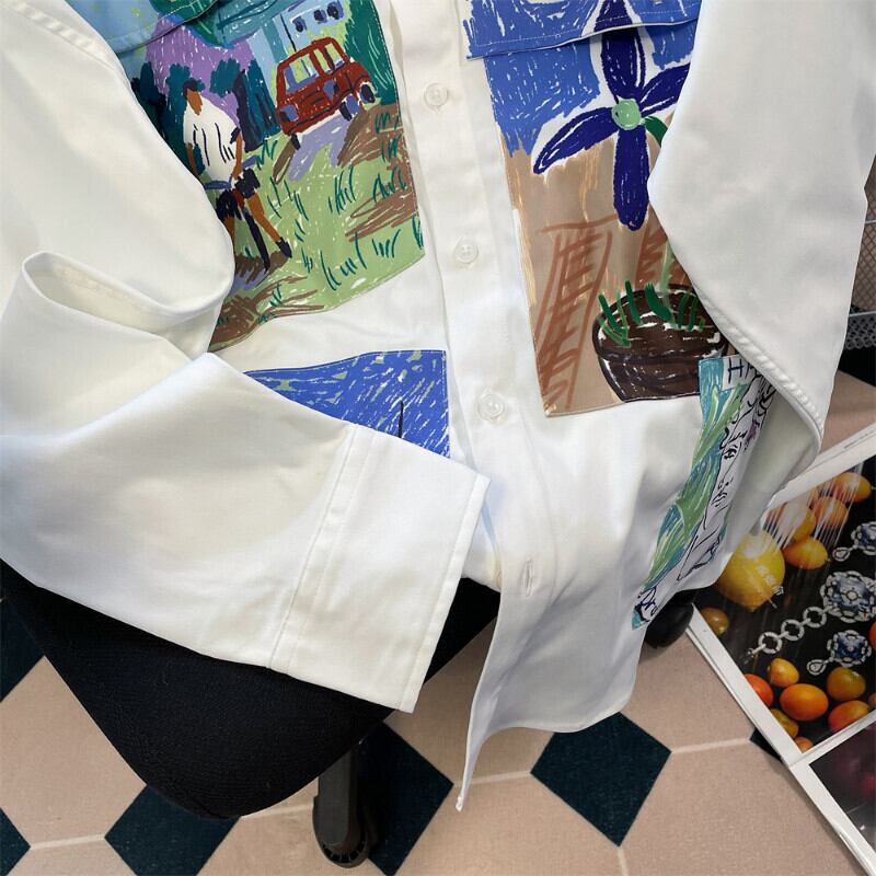 ルーズロングスリーブホワイトグラフィティシャツオイルトップスプリント Roupas s デモーダ春ブラウスシャツ 長袖 スプリング 春物