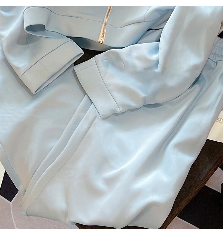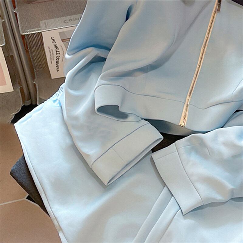 ルーズワイドレッグパンツスウェットパンツスーツラペルスウェットジップパーカー人形トップス 2 点セット春ジャケット シャツ スプリング 春物 ワイドパンツ