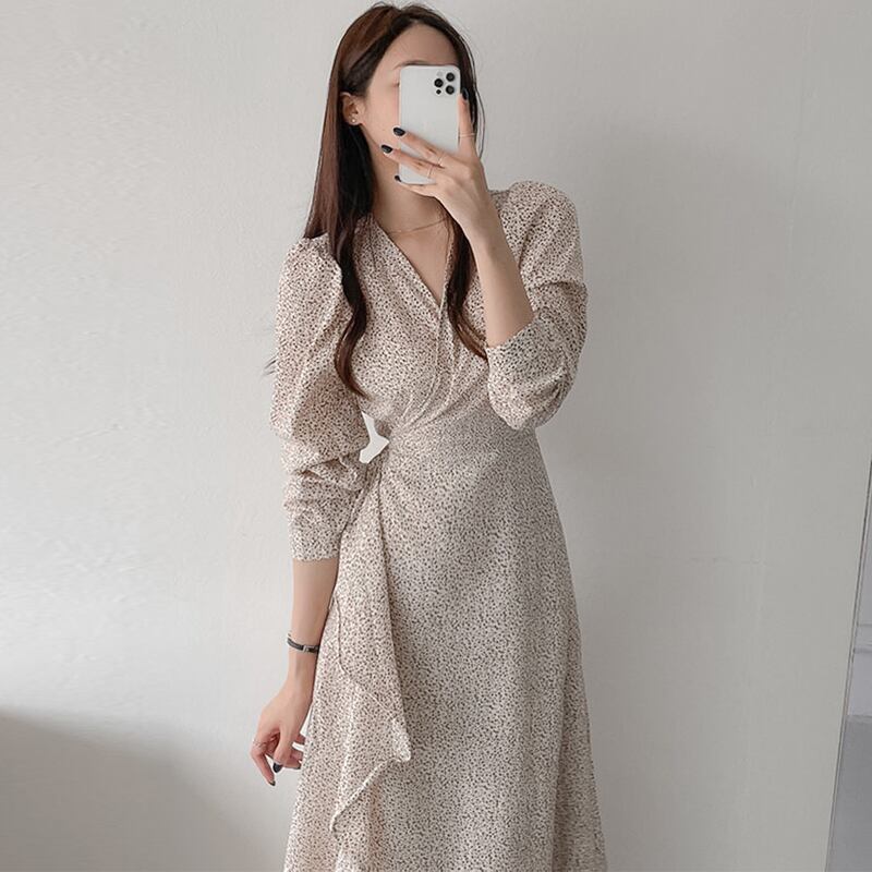 のドレス ワンピース 春休み Vestidos デ ボディコン ドレス V ネック タイ ウエスト フローラル ドレス 春 スプリング 春物 花柄 Vネック