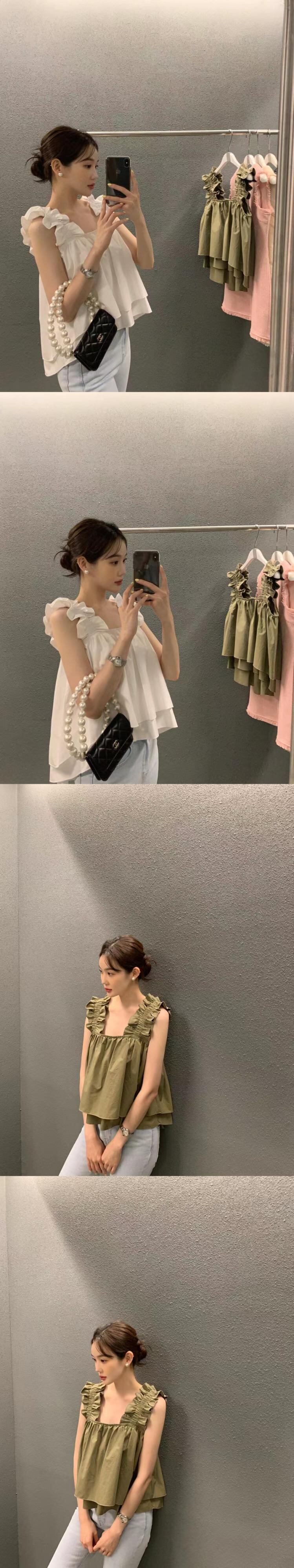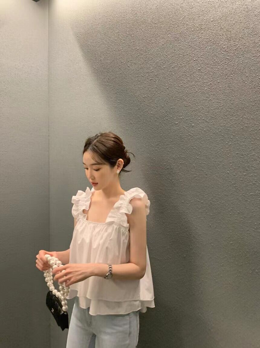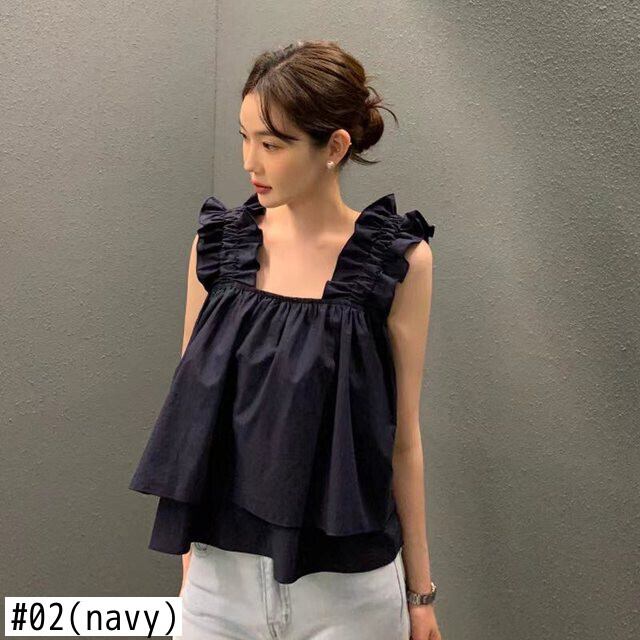 タンクトップ キャミソール 夏 スクエアカラー ブラウス イレギュラー ルーズ ノースリーブ シャツ デ モーダ ホワイト ドール シャツ ベスト フリル サマー 夏物 スクウェア