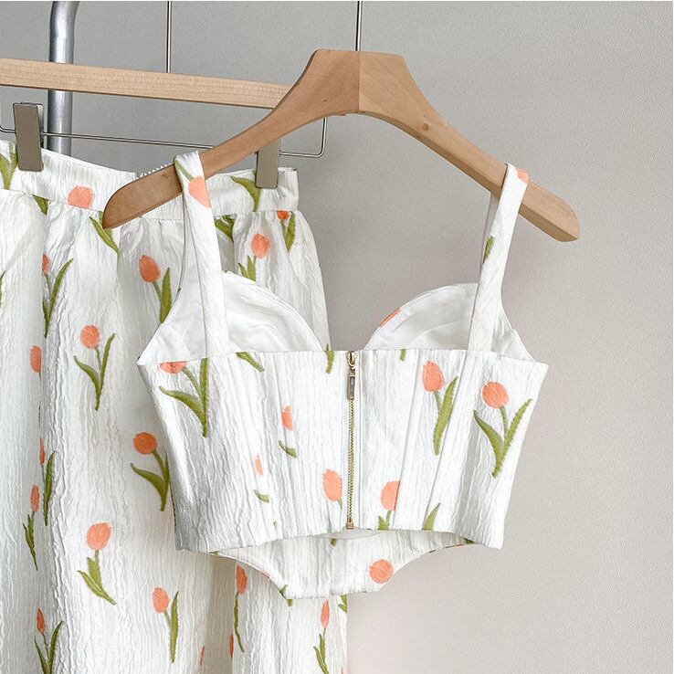 スリム a ライン ボディコン スカート夏不規則な花柄シャツスクエア半袖クロップ トップス 2 ピース セット ビーチ衣装ブラウス ショート ハーフスリーブ サマー 夏物 Aライン スクウェア