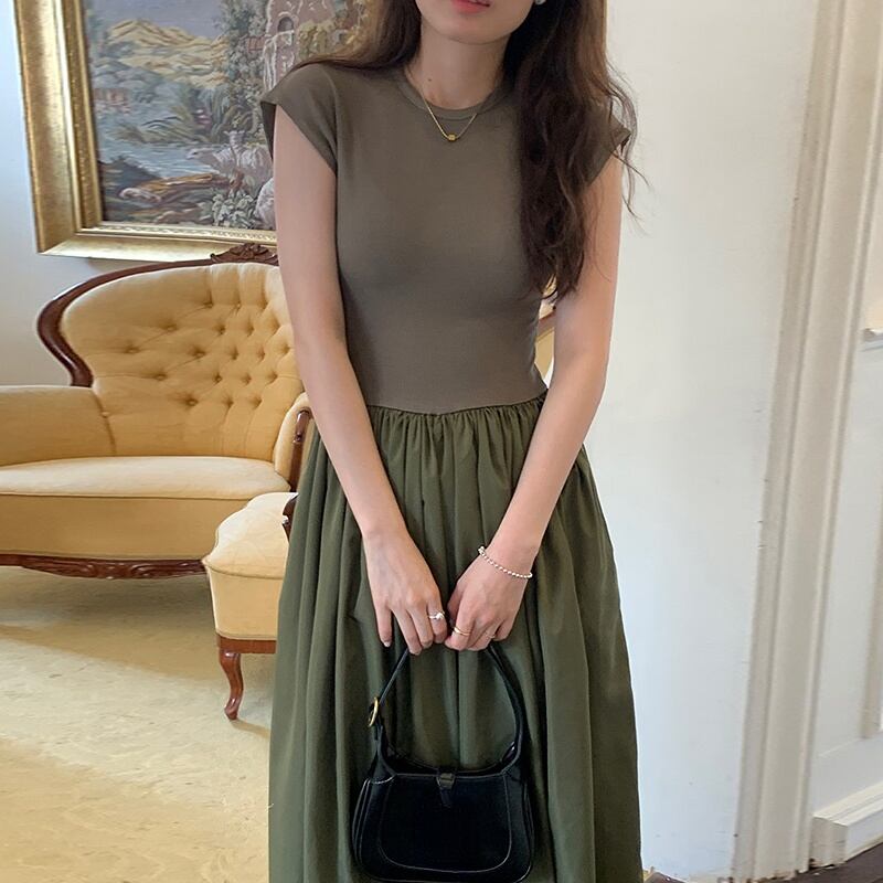 ネックスリム倍スイングベストドレスの夏のパッチワークフェイクツーピース Vestidos デボディコンドレス野生のノースリーブ サマー 夏物