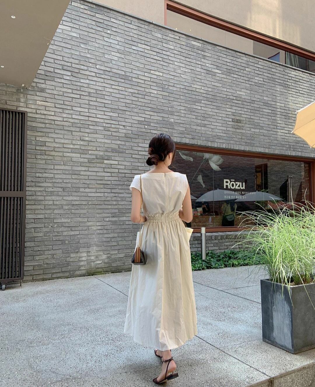 スラッシュ気質ミニマリズムオフショルダープリーツウエストダブルポケットノースリーブドレス Vestidos デサマードレス 夏物