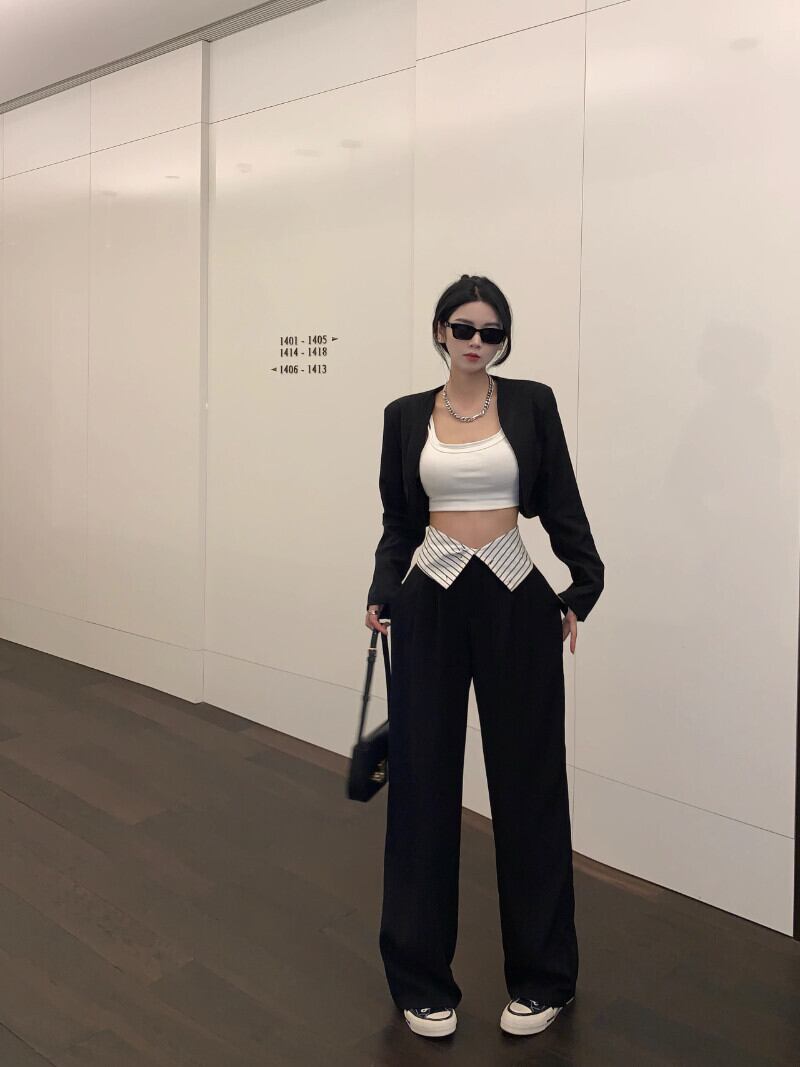 ワイド レッグ ブラック テーラード パンツ - ウエスト フロア モップ ルーズ パンタロン デ バギー パンツ Y2k ストリートウェア レッド ワイドレッグ ワイドパンツ