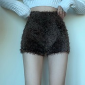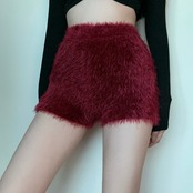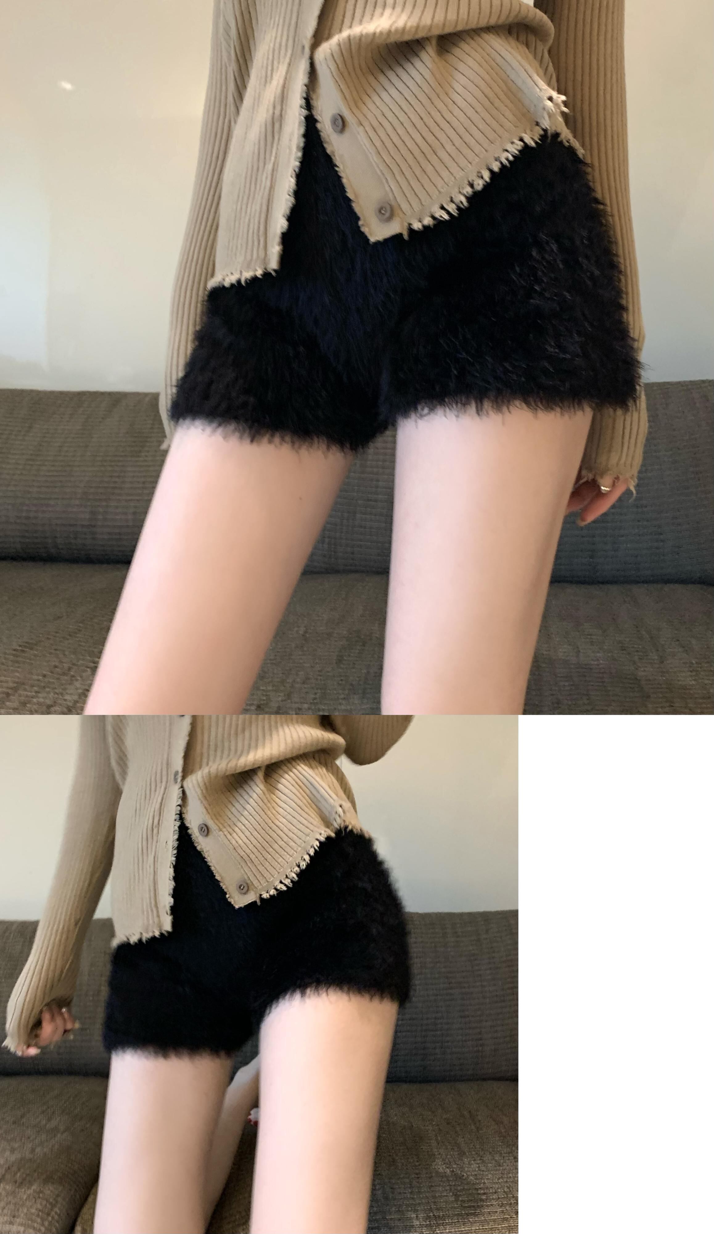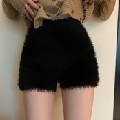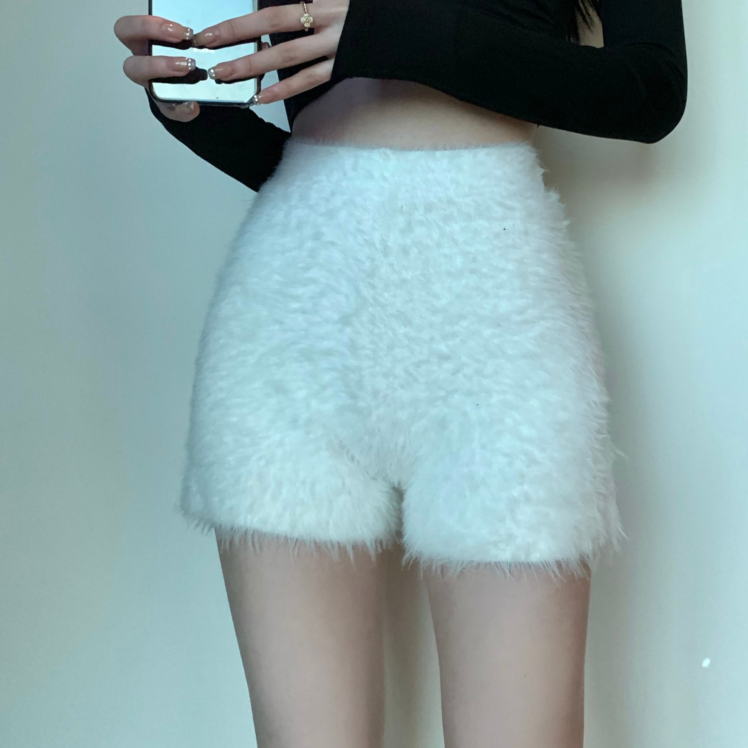 黒毛皮のスカートセクシーなラップヒップウール弾性ニットホワイトウエストショーツ Pantalones Cortos デ Y2k ブラック エラスティック 伸縮 ブルマー