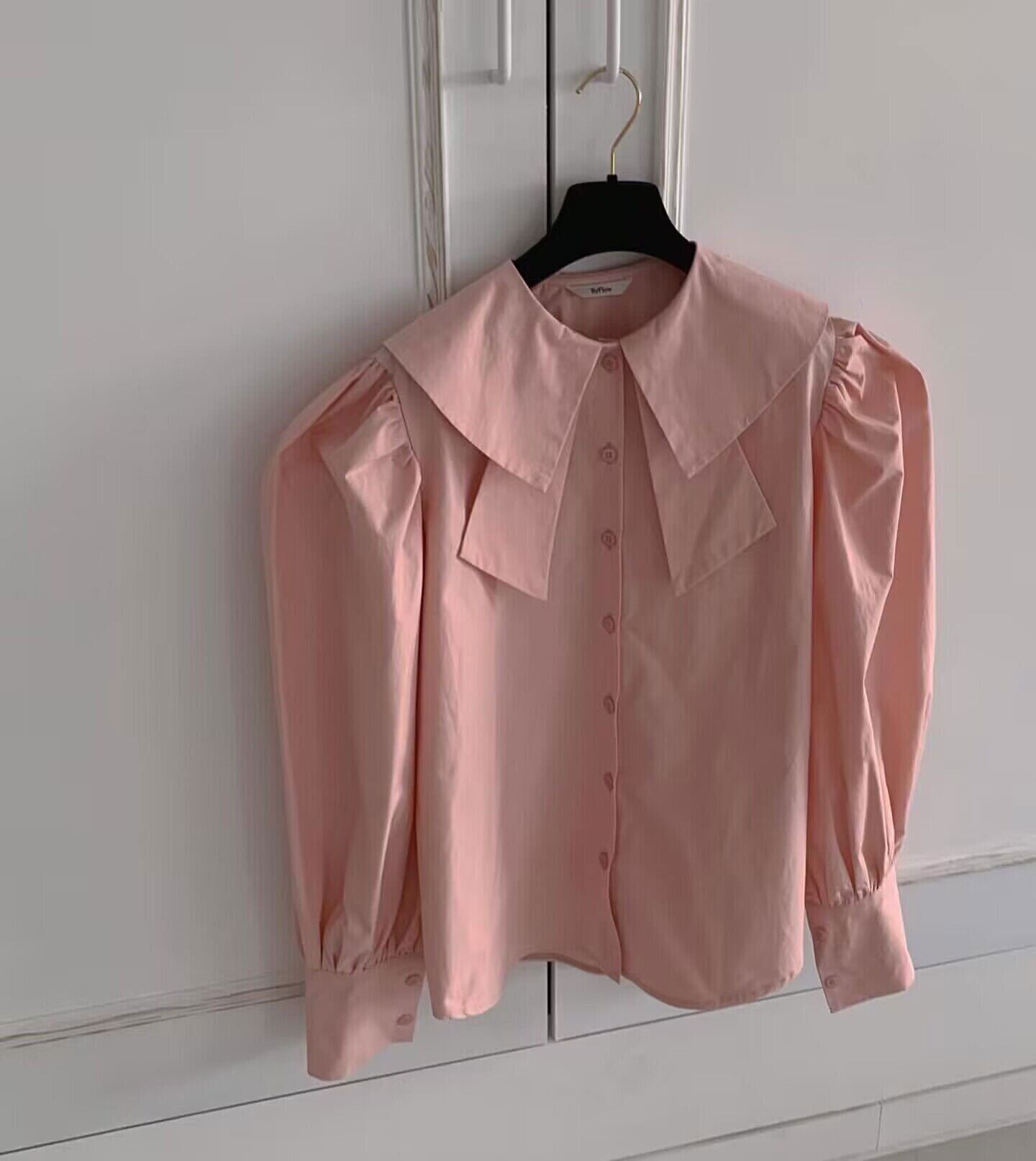 スウィートピンクシャツミニストラップツイードドレスセクシーなツーピースセット春ランタンスリーブブラウストップス白シャツ ホワイト 大人ガーリー キュート カジュアル スプリング 春物