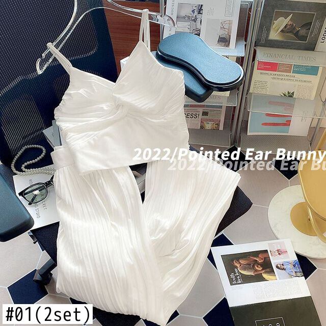 セクシーなタンクトップキャミソール夏ノースリーブ白シャツワイルドブラウスワイドレッグプリーツパンツセット 2 ピーススーツ ホワイト サマー 夏物 ワイドパンツ