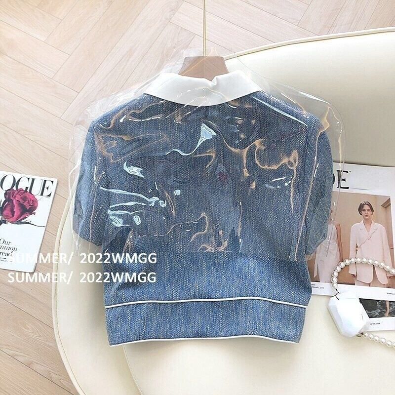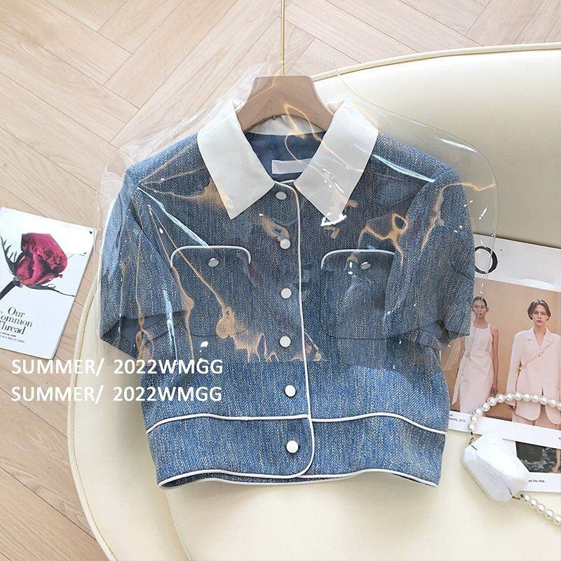 ブルーデニムシャツトップスカミーサクロップ半袖シャツカーディガンスリムブラウス太陽ジャケット春シック ショート ハーフスリーブ スプリング 春物