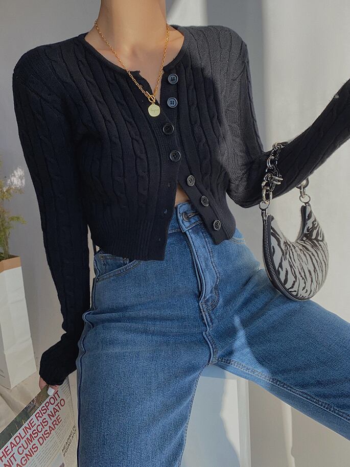 セクシーなクロップトップスショートツイストセーター無地クロップドカーディガンウエストスリムフィットセーター春セーター スプリング 春物 ソリッドカラー