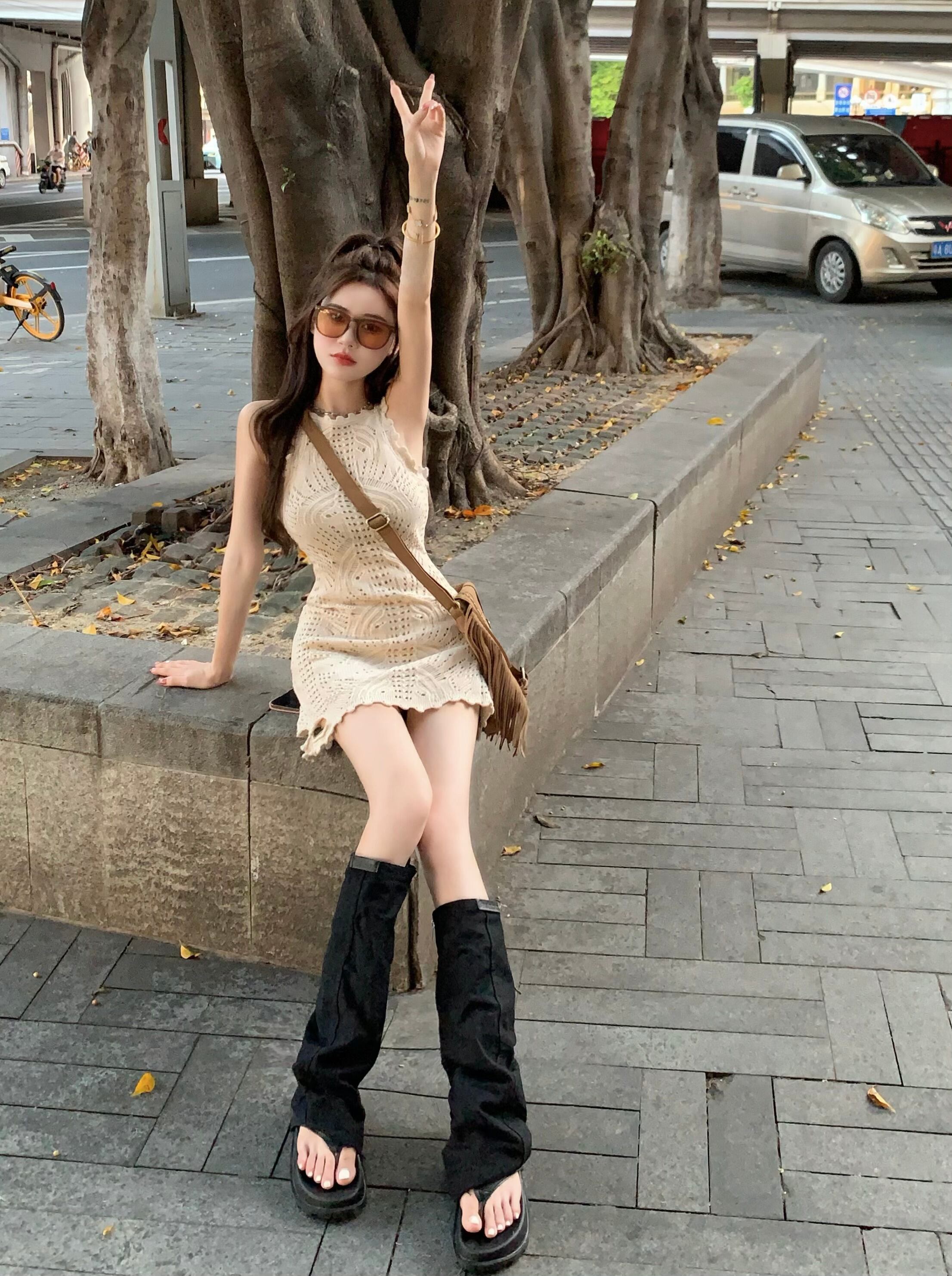 スリムでセクシーな中空アウト ニット ミニ ベスト Vestidos デ ローブ タンク ボディコン ストラップ ドレス