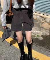 ショートパンツ フェミニノ ルーズ ワイルドウエスト ワイドレッグ ブラック コーデュロイショーツ レディース パンタロンズ コルトス デ ブルマー ワイドパンツ