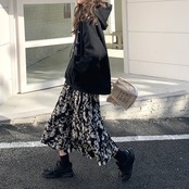 A ライン絞り染めスカートラップヒップペチコート段 Faldas モーダ春花柄 Y2k ミディロングウエスト スプリング 春物 Aライン