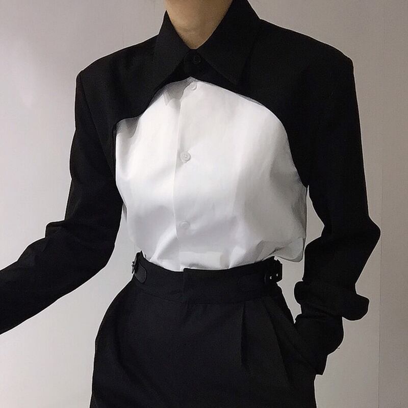 De Moda パッチワーク ブラウス ラペル コントラスト ルーズ シングル ブレスト ロング スリーブ シャツ レディース シャツ 長袖