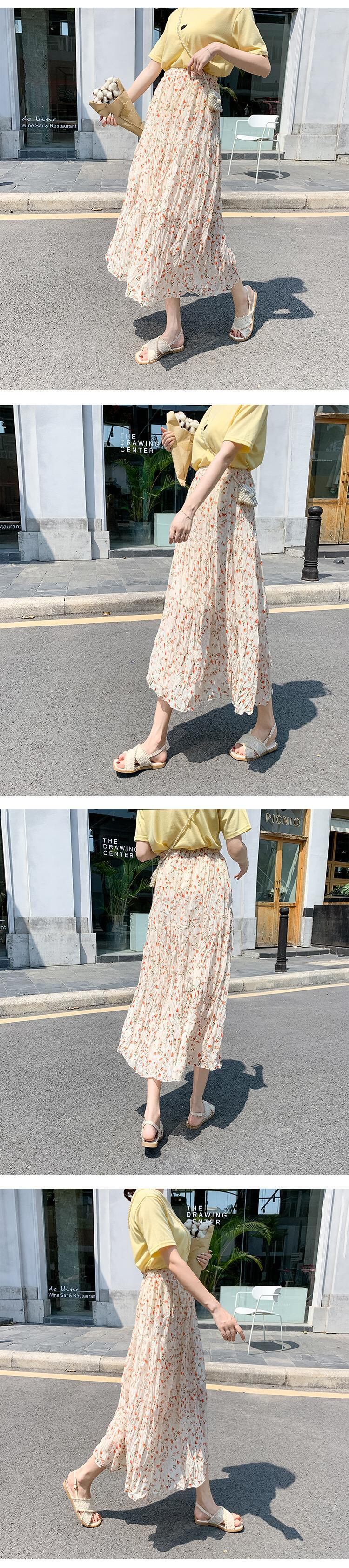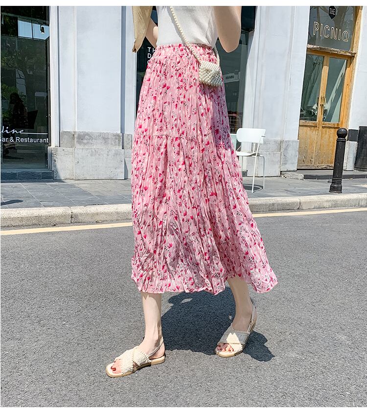 甘い春ウエストピンク花柄スカートスタイル段 Faldas モーダプリーツ A ラインホリデーレトロプリントシフォンスカート 大人ガーリー スウィート キュート カジュアル スプリング 春物 Aライン