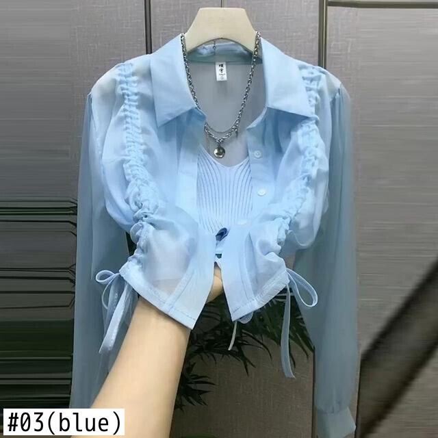 レディース ブラウス 巾着 ショート 日焼け止め ルーズ ロングスリーブ トップス カミーサ パースペクティブ ガーゼ シャツ 長袖