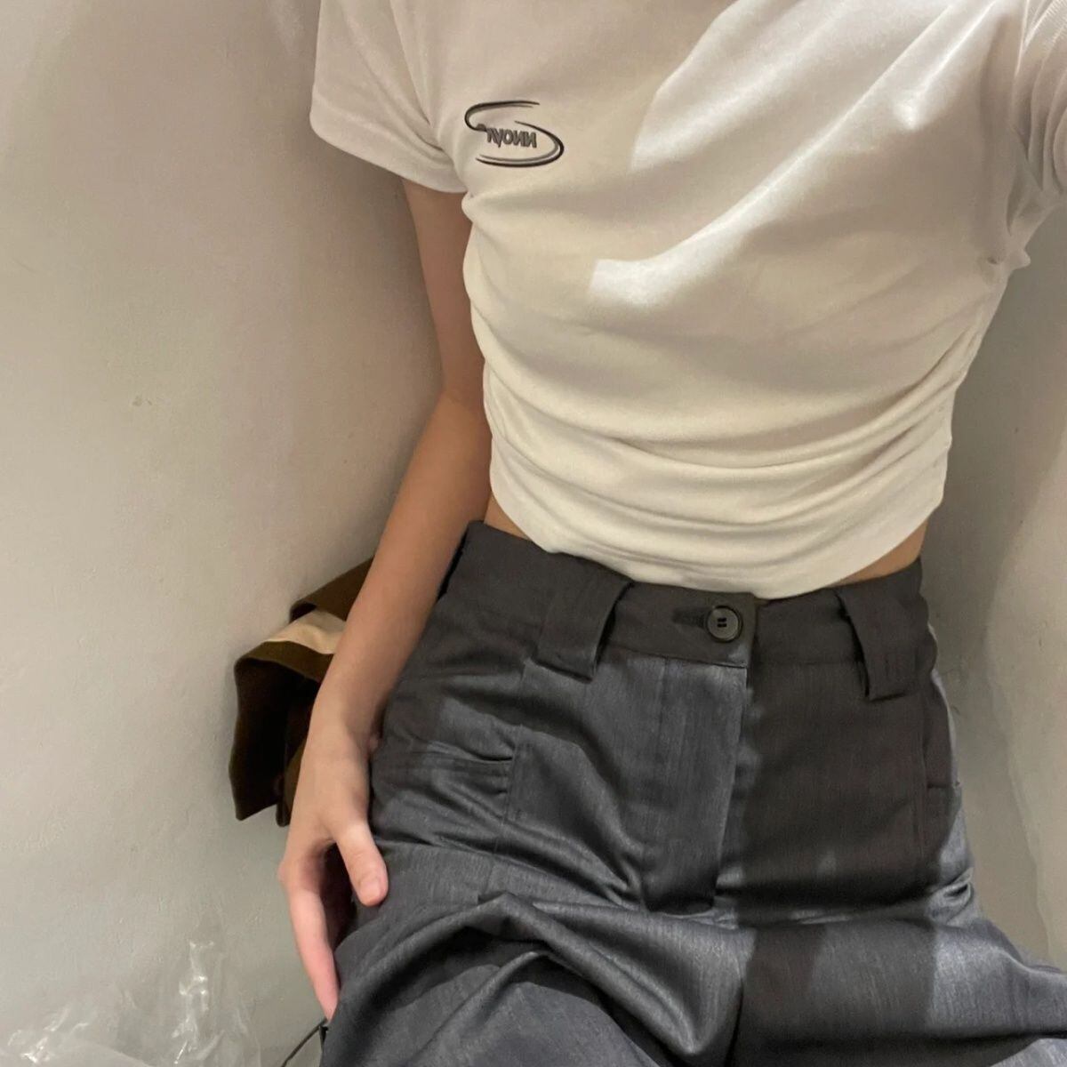 Tシャツ O ネック半袖白人 Tシャツクロップトップス Y2k 服ひだ夏シックな Tシャツシャツのセクシーな ショート ホワイト ハーフスリーブ サマー 夏物 Oネック